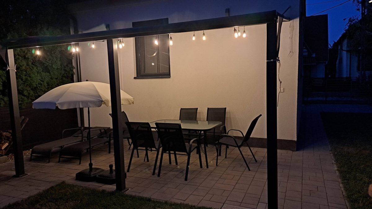 A kertben a ház mögött eldugva nagy kövezett teraszon a napvitorla alatt pihenhetsz, süthetsz tárcsán, vagy bográcsozhatsz. Ha csak lazulnál, akkor a napozóágyakra vagy akár közvetlenül fűbe heveredve bámulhatod az eget, miközben magadban megfogadod, hogy ide jövőre is visszatérsz! 😊